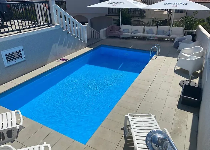 Położony około 15 min pieszo od Beach Tatijna, położony przy plaży Apartments Madzari - Ciovo - Pool Trogir oferuje udogodnienia, takie jak Wi-Fi oraz bezpłatny prywatny parking. Marina Baotić znajduje się 3 km od położonego przy plaży apartamentu, natomiast Kościół św. Barbary jest w 3 km.